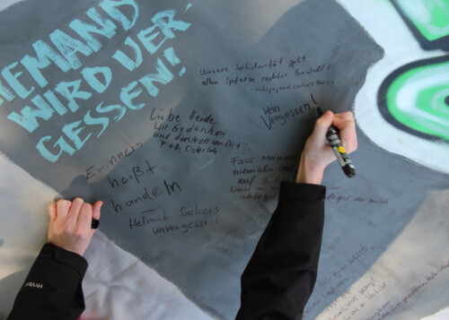 Hier dokumentieren wir ausschnitthaft Gedenkveranstaltungen in Erinnerung an Helmut Sackers vor Ort anlässlich der Todestage, u.a. mit ausgewählten Reden, Fotos oder Presseartikeln.